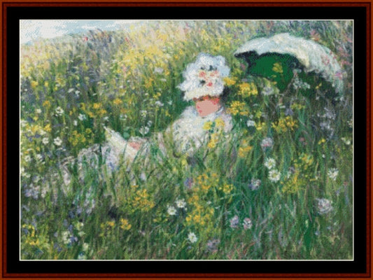 Woman Reading - Claude Monet pdf cross stitch pattern