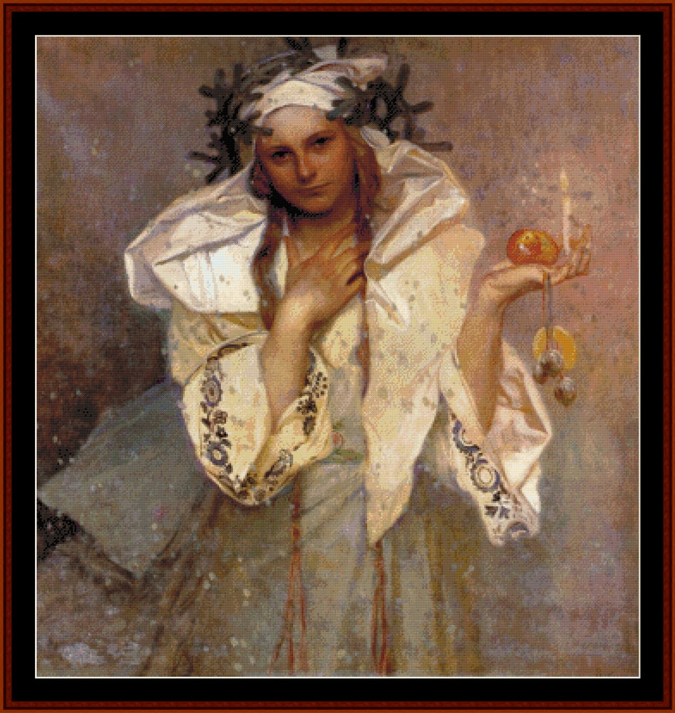 Christmas in America - Alphonse Mucha pdf cross stitch pattern