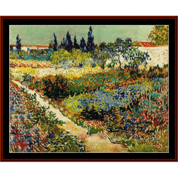 Flowering Garden in Summer - Vincent Van Gogh pdf cross stitch pattern