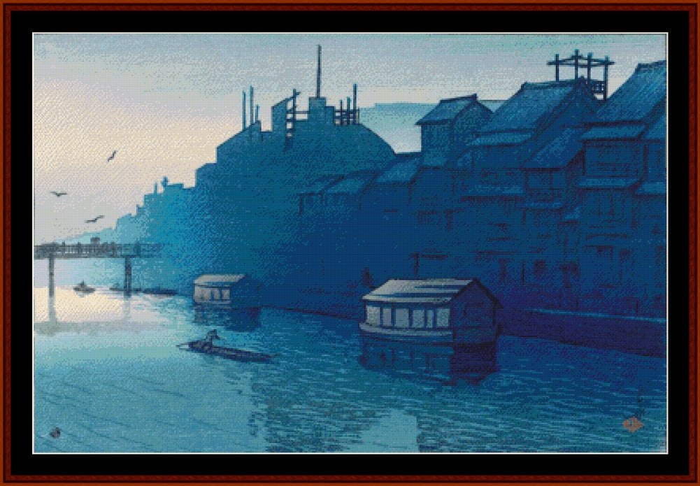 Morning at Dotonbri, Osaka - Asian Art pdf cross stitch pattern