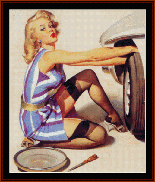 Pin-Up Changing Tire - Vintage Poster pdf cross stitch pattern by Cross Stitch Collectibles