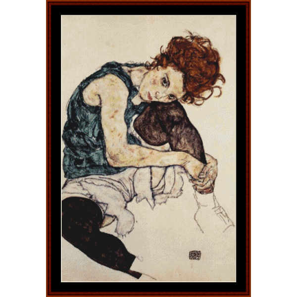 Seated Woman - Egon Schiele cross stitch pattern by Cross Stitch Collectibles