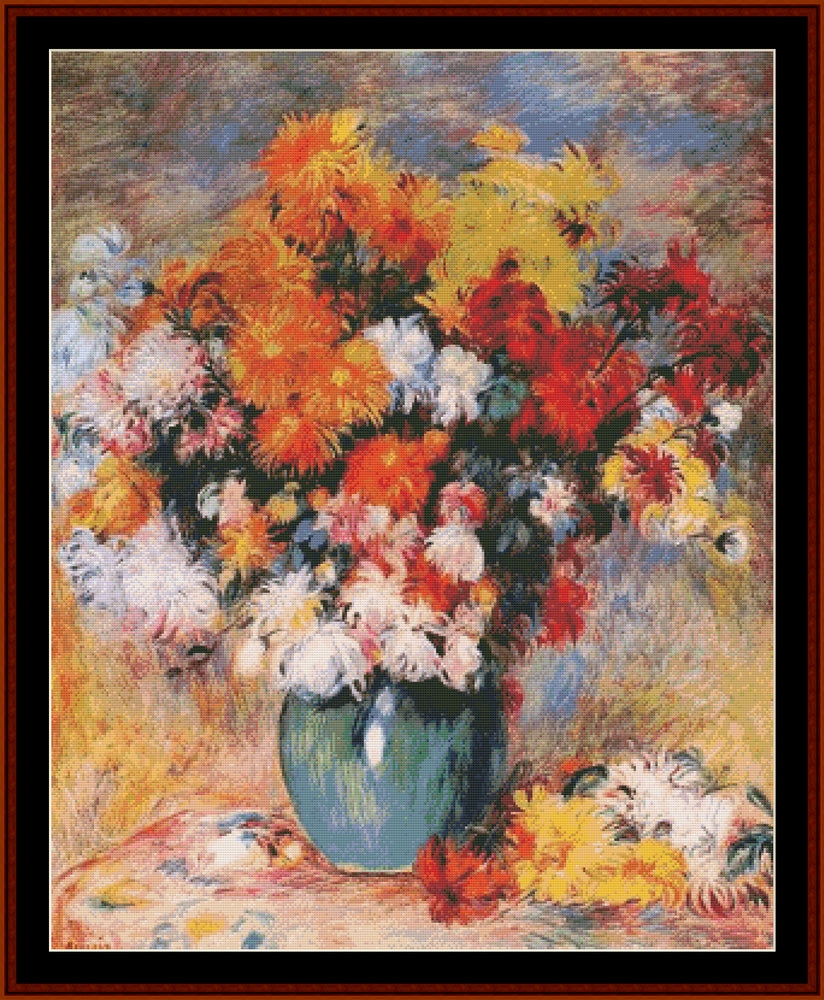 Vase of Chrysanthemums - Pierre Auguste Renoir pdf cross stitch pattern