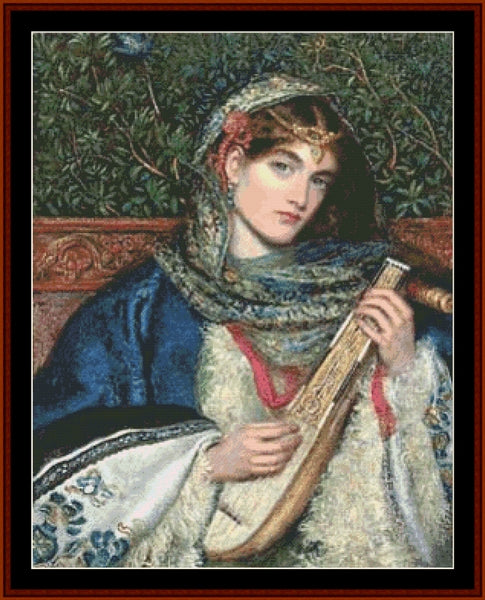Woman with Lute – Marie Spartali Stillman pdf cross stitch pattern